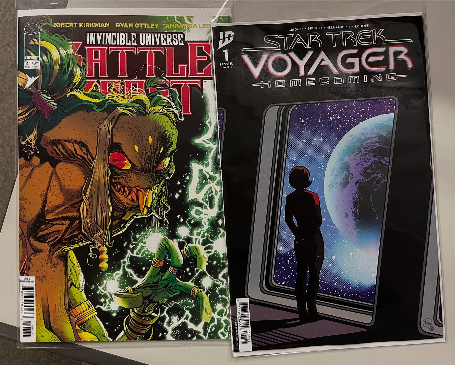 Speaking of books and comics, I got my reads this week. The new BATTLE BEAST (Which I am quite enjoying) and I actually bought a STAR TREK VOYAGER comic. Probably my first one ever. But the story idea is one I am looking forward to seeing told.