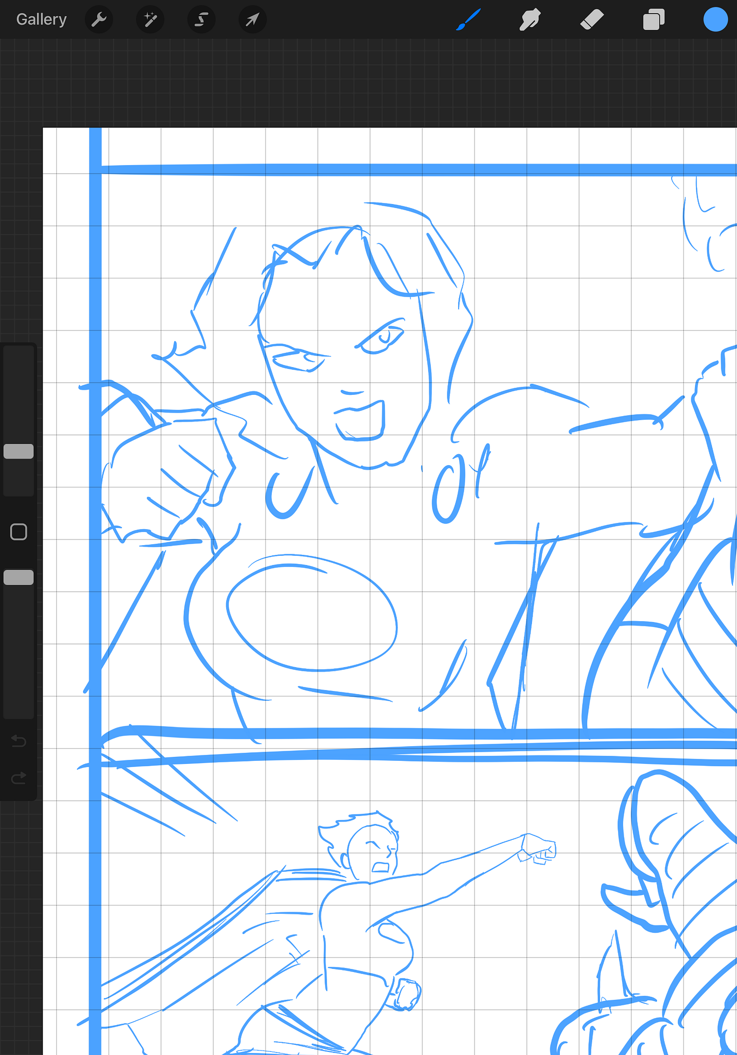 I have been busy working on new STARSLAM pages. I am into the finale of Book 5, setting everything up for Book 6, which I will begin mere seconds after finishing this first one. So far I am over the 200 page mark. I got about 10-15 pages to go and the book art is completed! If epic NSFW Superhero erotica comics is your thing, you can read it all on my Patreon right here: http://www.patreon.com/adamtalley - Here’s some loose pencils for the finale fight that I am working on right now: