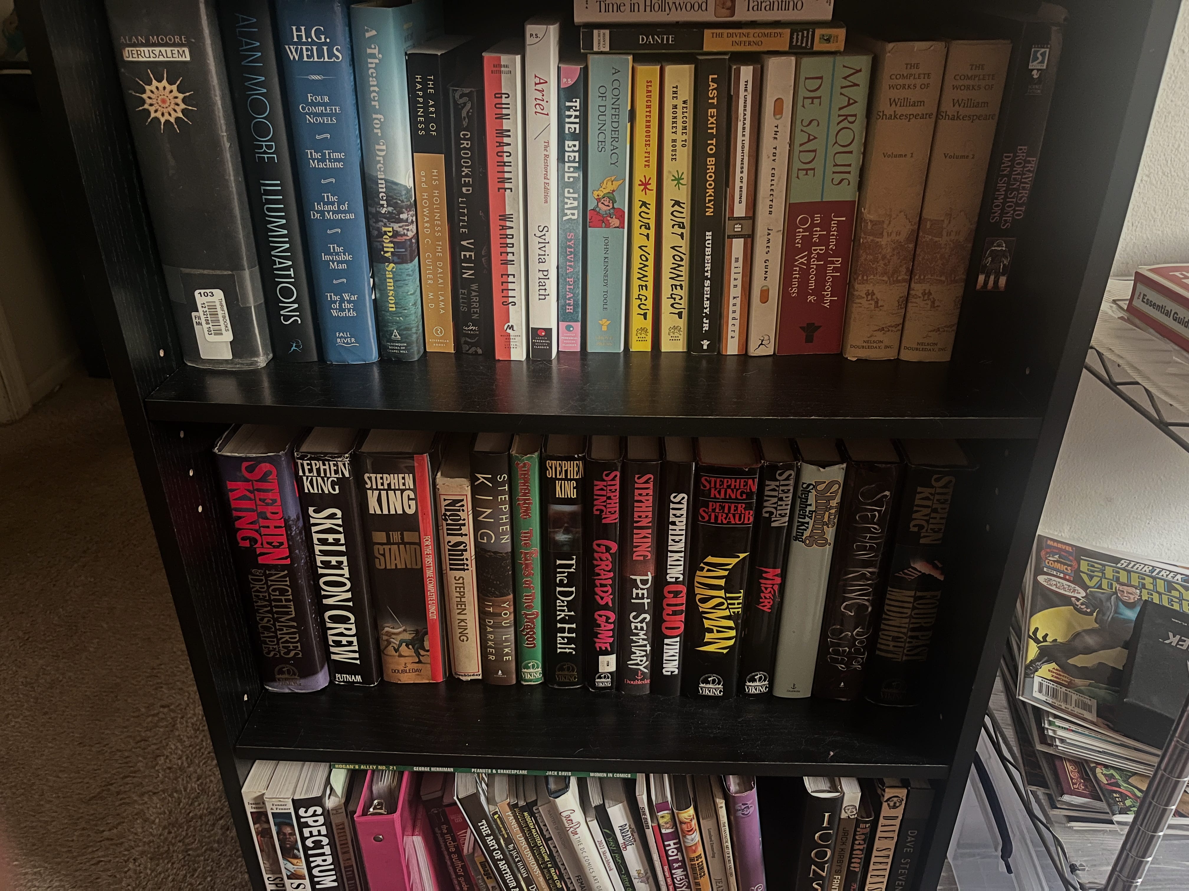 Monday I had pre-paid for a hotel room in Grand Rapids. I tried to pull out of it, but it was non-refundable! (I hate when I do that to myself! But I have been trying to force myself to get out of the house and do more things. Like an idiot! UGH) So I headed there around 10am. I hit a couple music stores and sold some stuff off for some extra scratch money. I did get one Ani Difranco CD though. And then to a used bookstore where I scored some stuff. I’ve been on a Stephen King kick lately, wanting to collect as many of his Hardcovers as I can. They are all going on the TO READ pile with everything else. Plus I got a used Sci Fi novel I’ve been looking for: