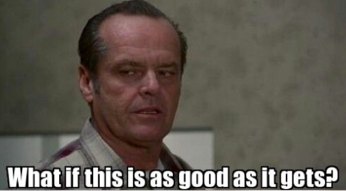 If so, I’m trying to believe that maybe that isn’t such a bad thing. To be content with it, its another matter. We’ll see how it goes.